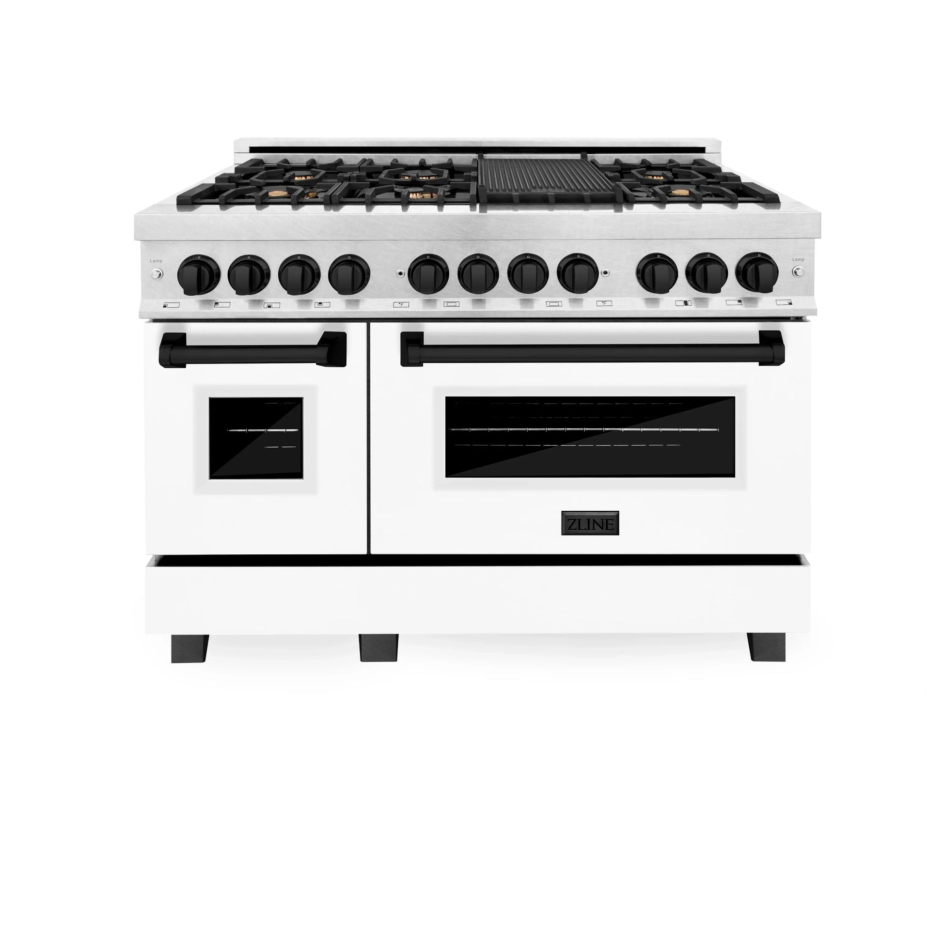 ZLINE Autograph Edition 48" 6.0 cu. ft. Dual Fuel Range with DuraSnow Stainless Steel, White Matte Door, and Matte Black Accents (RASZ-WM-48-MB) – Elevate Your Culinary Experience