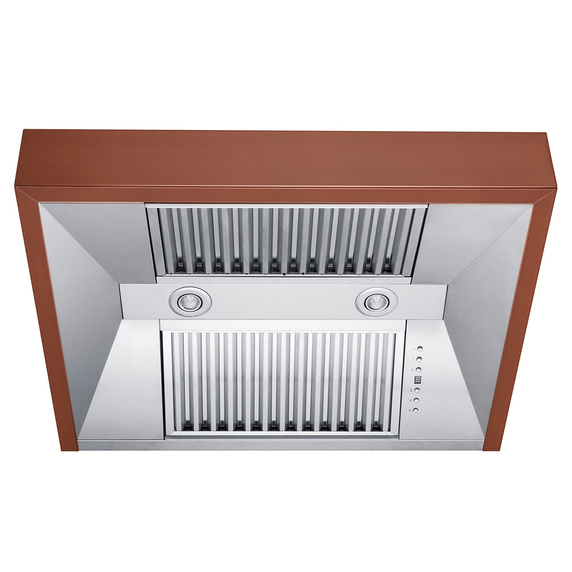 - The hood is crafted from 304-grade stainless steel, featuring ZLINE's proprietary hand-rubbed 7-layer copper finish, adding a touch of elegance to your kitchen.